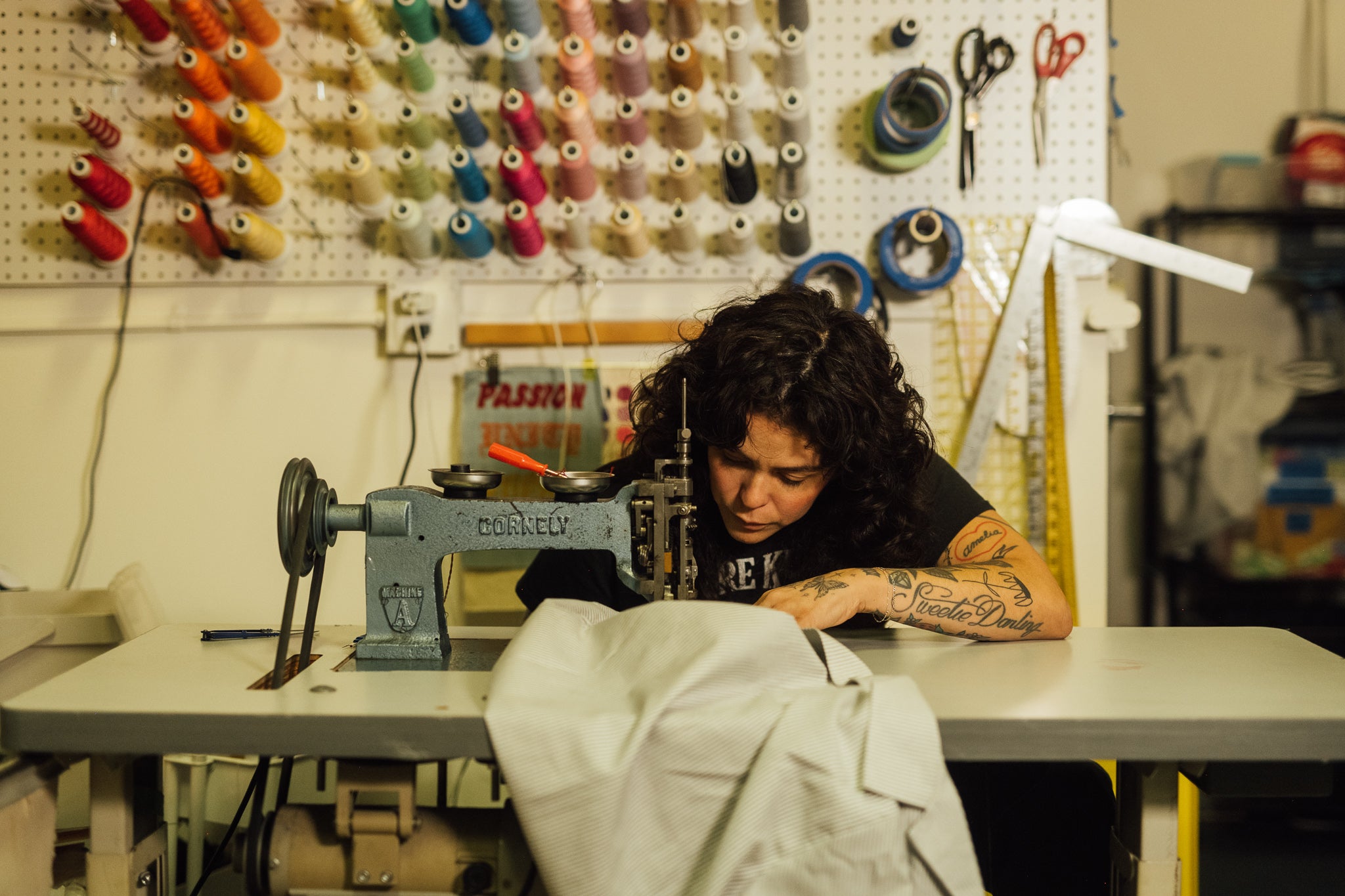 Mira Flores is a fashion line, an embroidery service shop, and a vintage store. Our clothing is designed in Oakland, and made in Peru — the country where owner, Sam Saavedra grew up. All our up-cycled clothing is hand crafted by our tailors at Mira Flores Studios in Oakland.